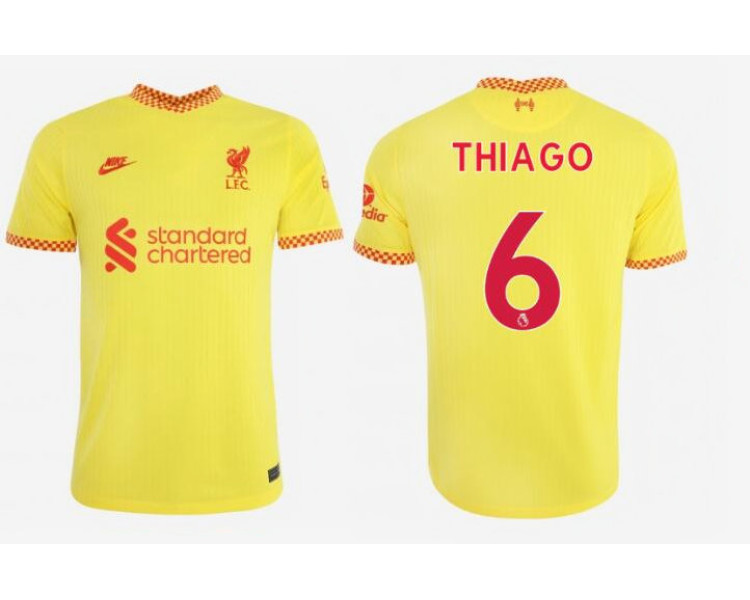 2021/22 Liverpool Third #6 Thiago Alcantara Authentic Yellow Jersey