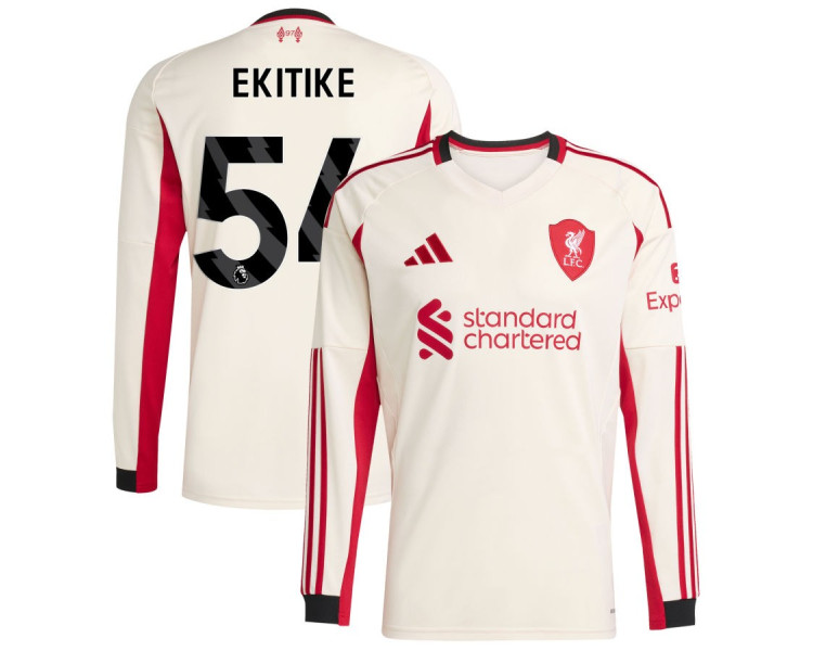 Represent the future of Liverpool FC with the official Liverpool 25/26 Hugo Ekitike 54 Authentic White Away Long Sleeve Jersey. Designed for true fans, this white away jersey replicates the exact style worn on the pitch, featuring cutting-edge performance technology to enhance comfort and mobility during play.