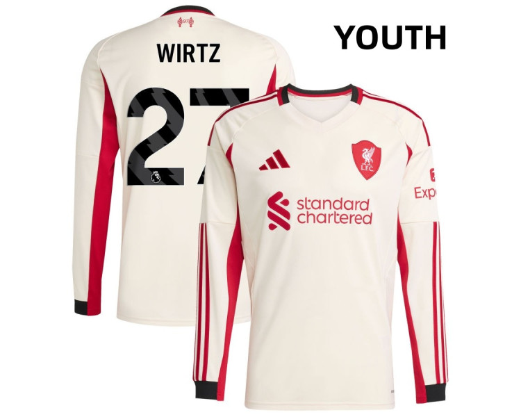 Youth 2025-2026 Liverpool Florian Wirtz 27 Replica White Away Long Sleeve Jersey