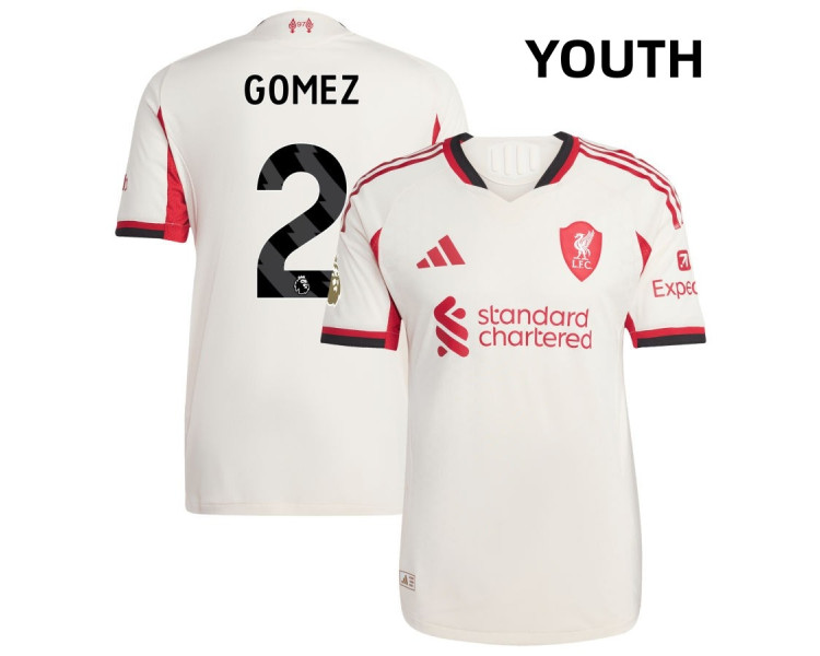 Represent the future of Liverpool FC with the official Youth Liverpool 25/26 Joe Gomez 2 Replica White Away Jersey. Designed for true fans, this white away jersey replicates the exact style worn on the pitch, featuring cutting-edge performance technology to enhance comfort and mobility during play.
