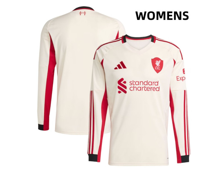 Women's 2025-2026 Liverpool Authentic White Away Long Sleeve Jersey