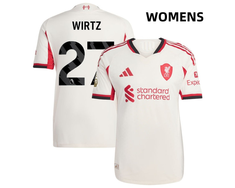 Represent the future of Liverpool FC with the official Women's Liverpool 25/26 Florian Wirtz 27 Authentic White Away Jersey. Designed for true fans, this white away jersey replicates the exact style worn on the pitch, featuring cutting-edge performance technology to enhance comfort and mobility during play.