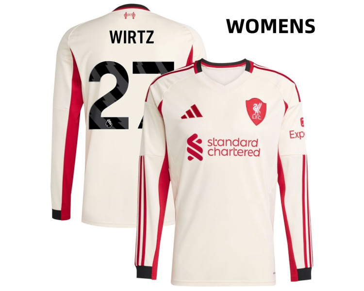 Represent the future of Liverpool FC with the official Women's Liverpool 25/26 Florian Wirtz 27 Authentic White Away Long Sleeve Jersey. Designed for true fans, this white away jersey replicates the exact style worn on the pitch, featuring cutting-edge performance technology to enhance comfort and mobility during play.