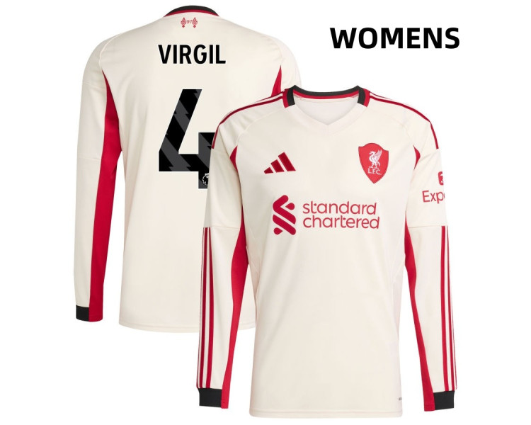 Women's 2025-2026 Liverpool Virgil Virgil 4 Authentic White Away Long Sleeve Jersey