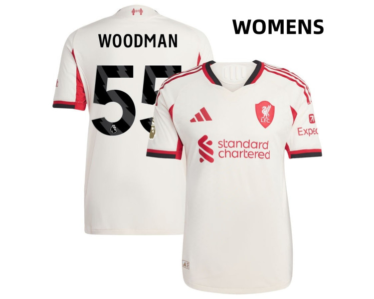 Represent the future of Liverpool FC with the official Women's Liverpool 25/26 Woodman FWhitedie 55 Authentic White Away Jersey. Designed for true fans, this white away jersey replicates the exact style worn on the pitch, featuring cutting-edge performance technology to enhance comfort and mobility during play.